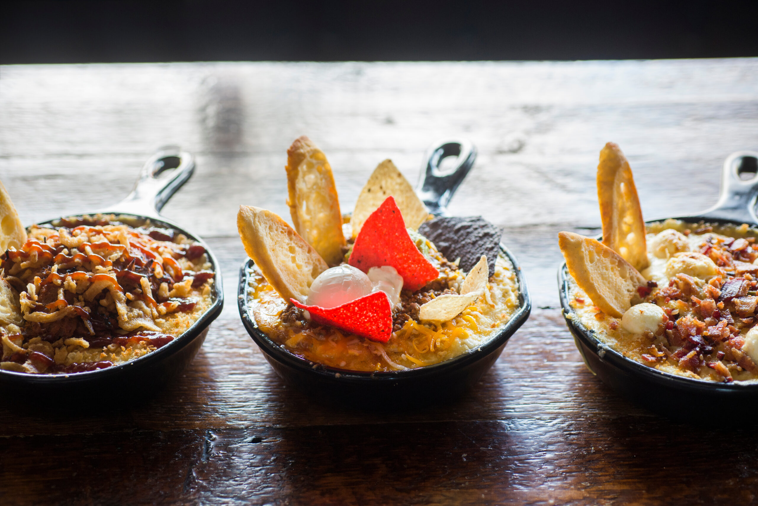 As all Wisconsinites know everything is better cheesy. Using their delicious house recipe as a canvas, Jackie and Nick have experimented like mad cheese scientists, combining favorite comfort flavors into a skillet of perfection, each one cradled within the curves of traditional mac and cheese.